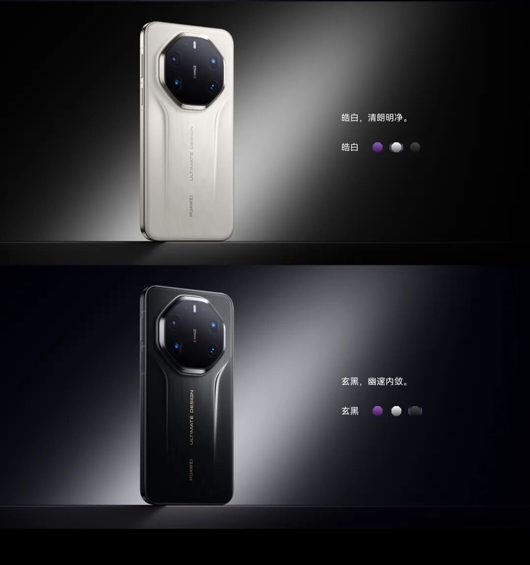 Mate80 Pro Max共提供极地银、极昼金、极光青、极夜黑四款配色。