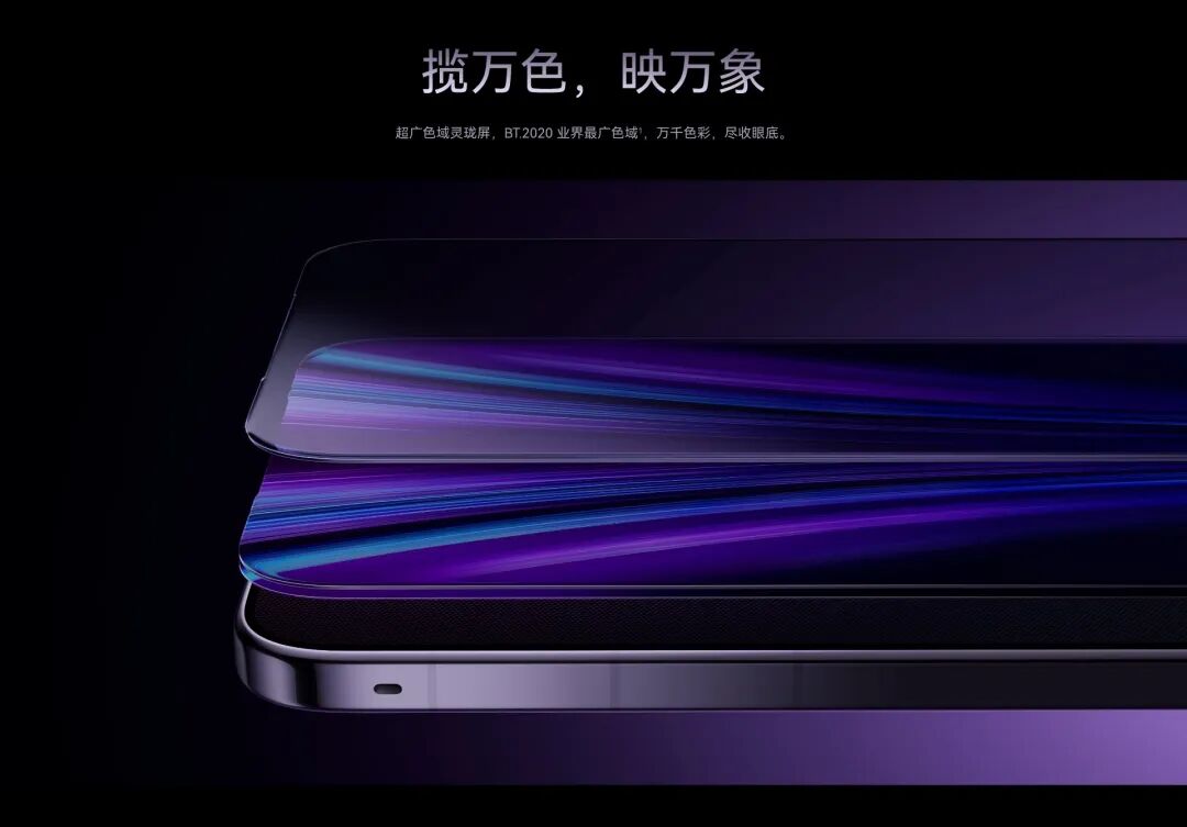 采用6.9 英寸 1.5K 120Hz LTPO超透亮灵珑屏,值得注意的是,Mtae80 RS 非凡大师独占 BT.2020 色域!相比常规 P3色域屏幕,覆盖更广30% ,也就是色彩显示更丰富,层次更分明。