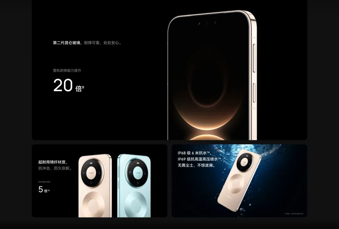 采用经典双环设计,搭配超耐刮金属材质后盖,耐刮能力直接提升2倍,正面采用第二代昆仑玻璃,搭载玄武构架的金属机身,还支持IP68+IP69 防尘防水...,小糖只想说,Mate系列的强度真是长江后浪推前浪,一浪更比一浪强。